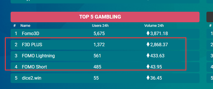 当然,除了参与层面,不少人还乐于“亲力亲为”,在Fomo3D走红的第二天,已经有另外3款致敬产品出现。