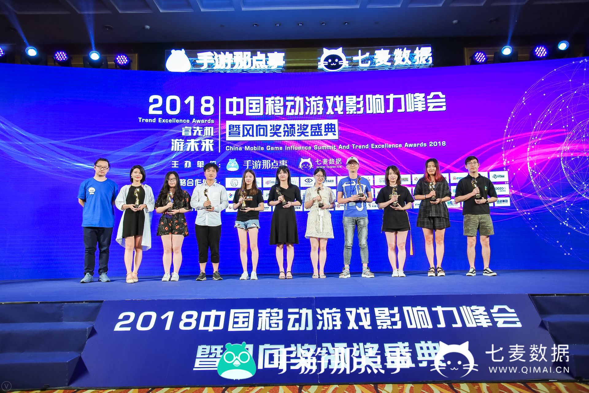 8月2日,“2018中国移动游戏影响力峰会暨风向奖颁奖盛典”在上海举行。本次活动由手游那点事联合七麦科技举办,同时携手广东省游戏产业协会、腾讯互娱、网易游戏、腾讯社交广告、DataEye、君海游戏、3K游戏、星辉游戏、中手游、漫灵游戏、37手游、多益网络、恺英网络、盛和网络、贪玩游戏、巨人网络、天马时空、乐元素、IGG、创酷游戏、益玩游戏、草花互动、四九游戏、今日头条、小米互娱、cocos、阿里云、爱奇艺游戏、西山居、游族网络等,齐聚一堂探讨行业前沿趋势,为游戏圈带来了一场干货盛宴。