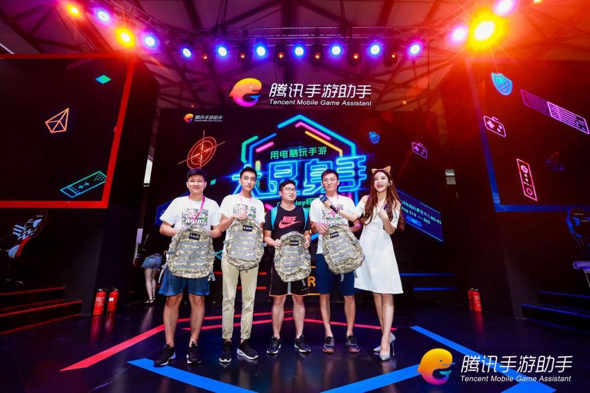 现场美女Showgirl为获胜水友颁发腾讯手游助手专属定制奖品,据了解,腾讯手游助手设置了“排名奖”、“成就奖”等不同奖项,来为参与比赛的玩家“花式送福利”。在游戏中成功斩杀10位敌军的玩家,还可以获得游戏同款高级背包、键鼠套装、哈士企大公仔等游戏周边礼品,在游戏中表现越出色玩家获得的奖品越丰厚。
