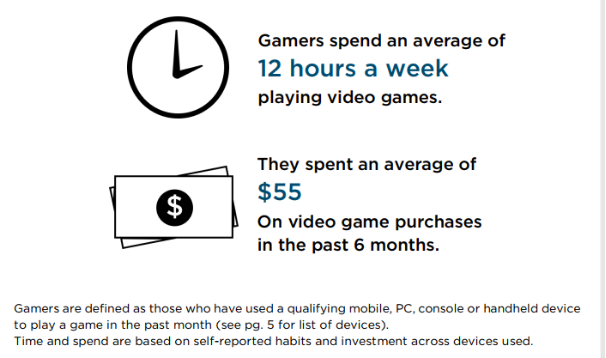 此外,该报告显示,过去六个月玩家平均花费55美元,平均每周花12个小时玩游戏。