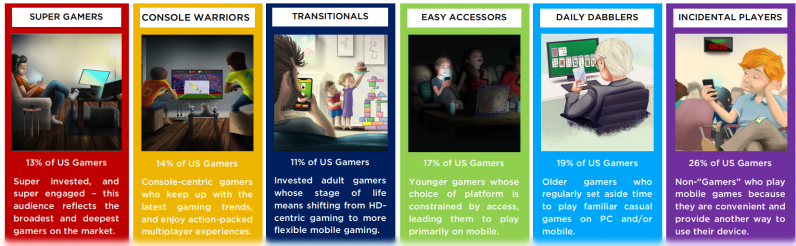 易访问玩家(17%):通常玩手机游戏的年轻人。