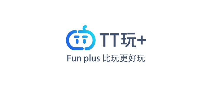 Logo用渐变蓝作为主色,纯白作为底色,给人简洁、干净、清新感,符合TT玩+ Slogan倡导的“Fun Plus,比玩更好玩”调性。