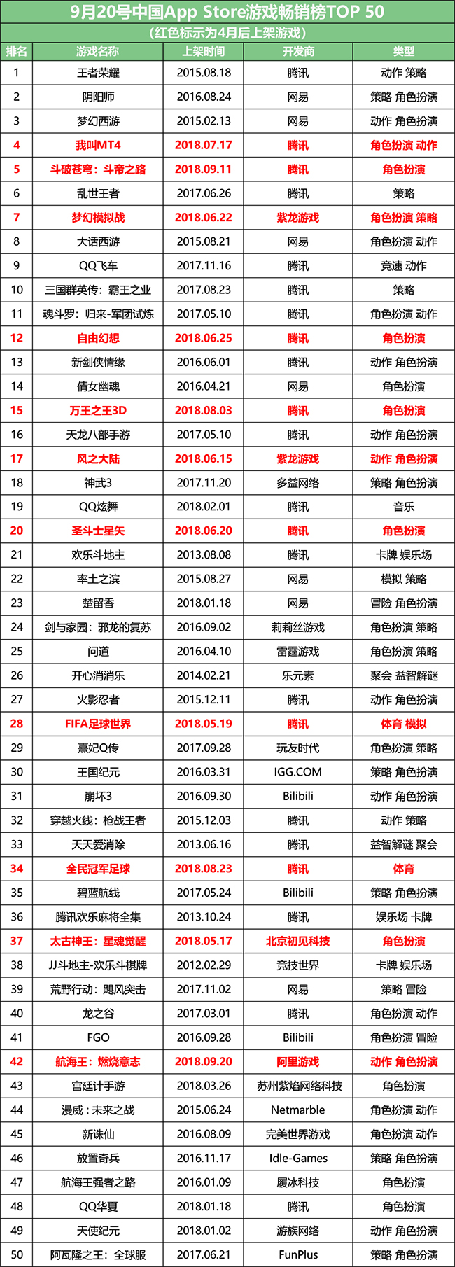现在的畅销榜TOP50:RPG垄断70%,新游戏仅11款,腾讯占7个