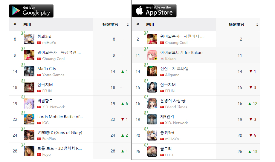 然而众所周知,每个市场都有着各自喜好的品类,而且玩家习惯,市场模式等都有自己的一套,如何选择还是有难度的。手游那点事通过对比过去大半年的App Store畅销榜Top 30名单发现:韩国市场似乎正在成为中国游戏出海的新红海。