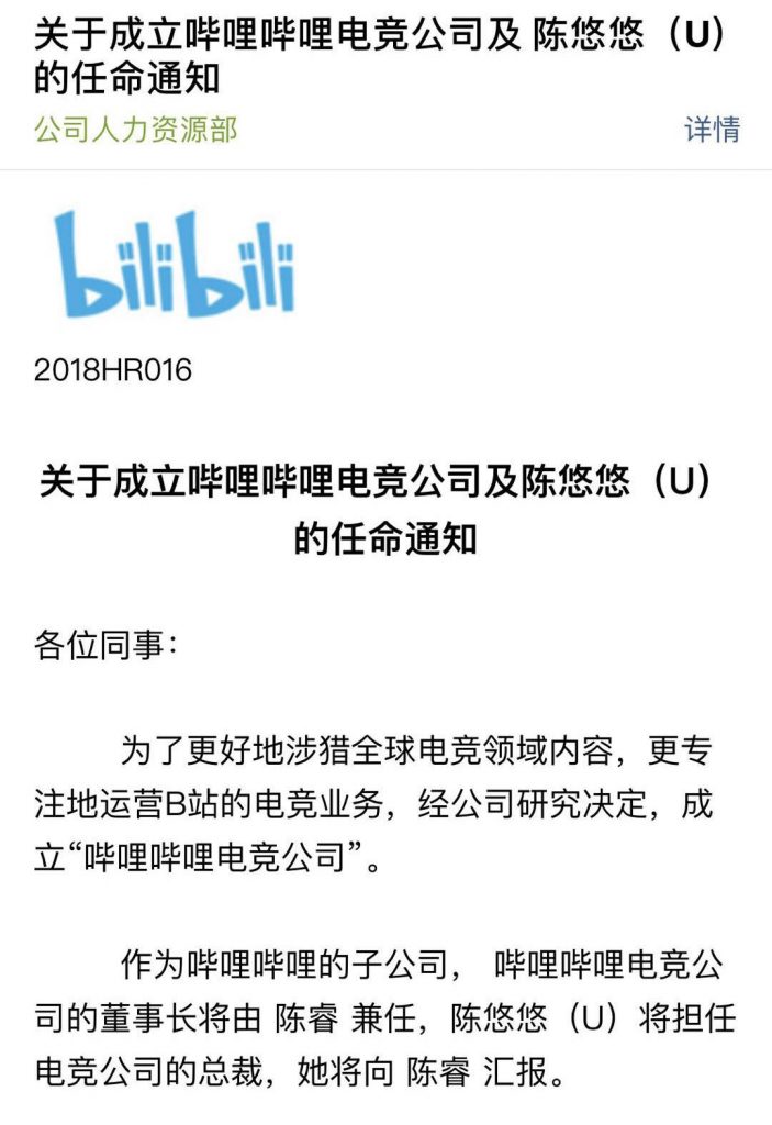 进入2018年之后,成功IPO上市的哔哩哔哩(以下简称B站)虽然经历了App下架风波,但是利好消息也不有少:在日前再获腾讯3.176亿美元投资的消息之后,今天又再宣布成立哔哩哔哩电竞公司,并找来了前任战旗直播掌舵人陈悠悠出任新公司CEO。这也就意味着,B站将正式进军电竞圈。