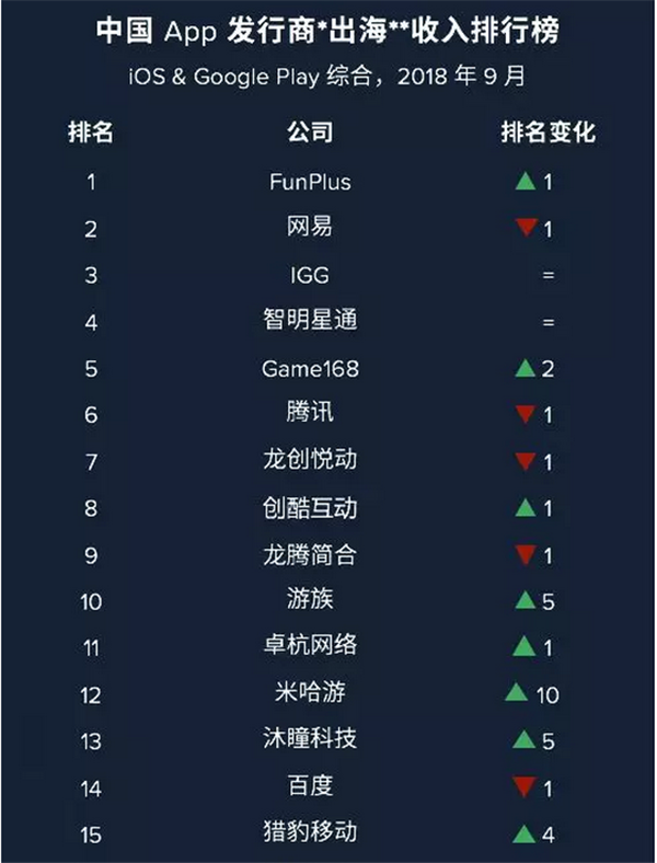 9月中国App发行商“出海”收入排行榜 FunPlus位重登榜首
