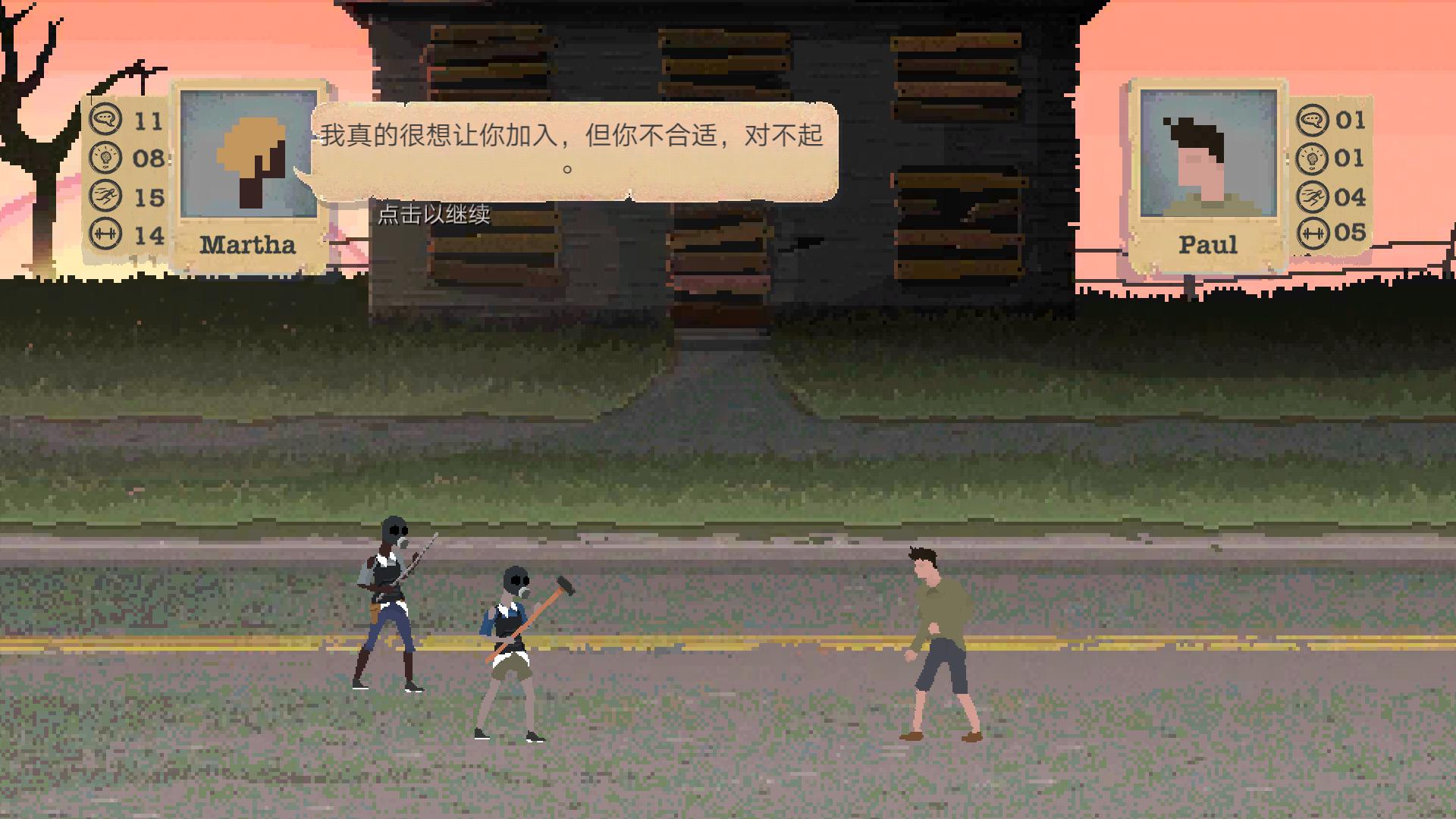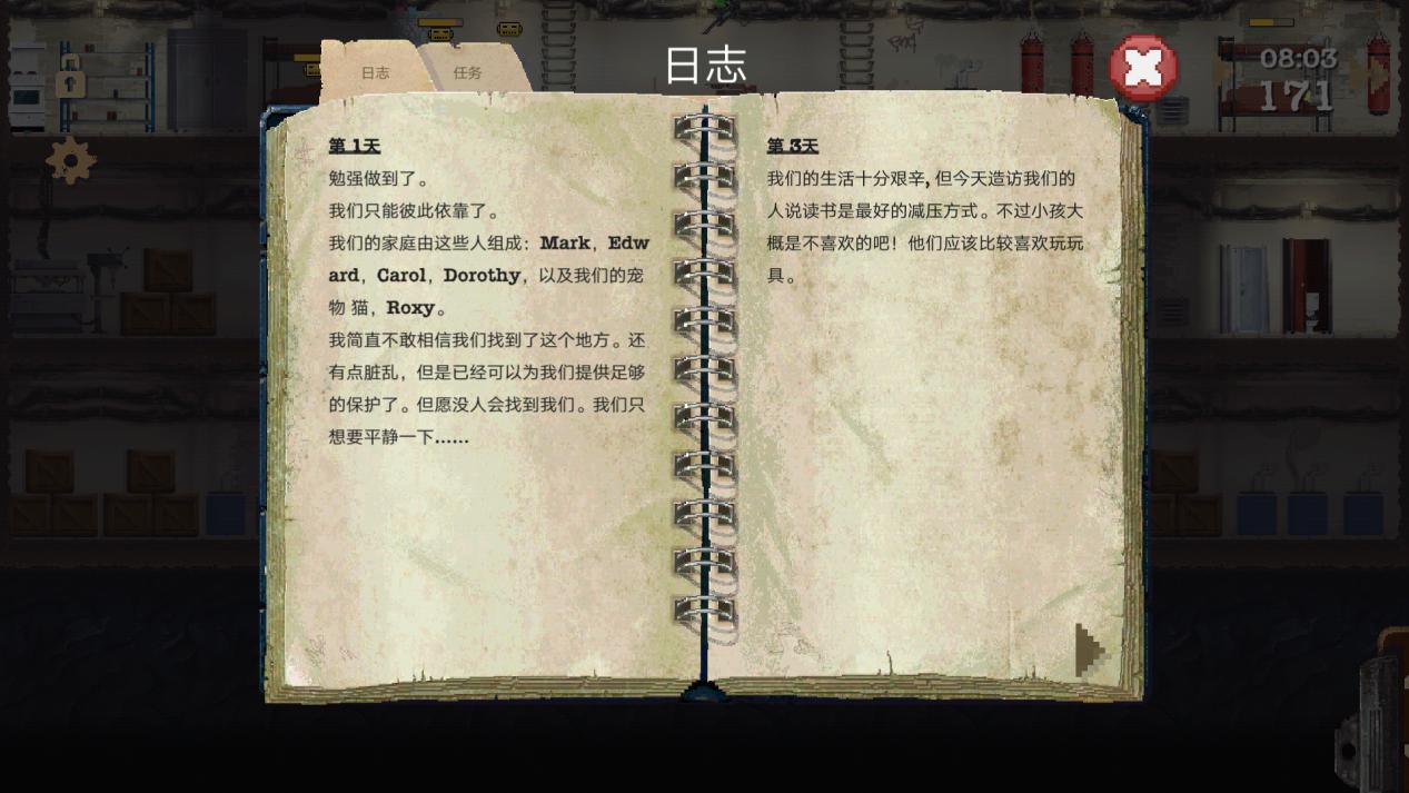 这些维度包含降雨、资源、入侵概率、主角性格等等玩家想到想不到的各个方面:降雨影响水源,资源影响材料与食物、入侵者会随意掠夺庇护所物资甚至杀人,懦弱的人物在面对敌人时甚至会直接抱头投降、丢掉武器,总之,即使是最简单的模式,初入末日世界的玩家也难以长期生存。