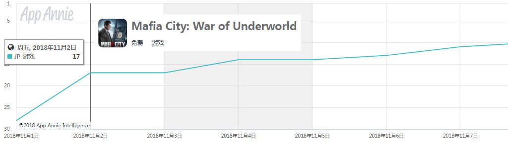 《黑道风云》在11月2号开始就保持在日本App Store畅销榜Top20之内