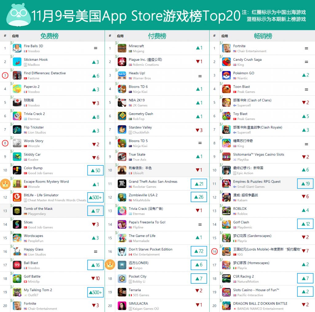 总结本期的美国市场,虽然《远方(LONER)》在美国的付费榜上取得了中国出海游戏0的突破,但是总体上,中国出海游戏在美国市场的表现仍未摆脱低潮,看看日历,2018年也就剩下这几十天了,希望未来的日子能看到中国游戏在美国市场再度崛起。