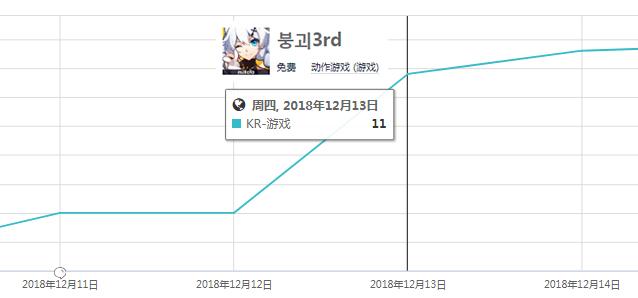 在继上期成为日本市场的出海之星后,《崩坏3》本期在韩国市场的表现也非常出色。这也在一定程度上反映出,在二次元细分领域中,出海的机会还是有的。