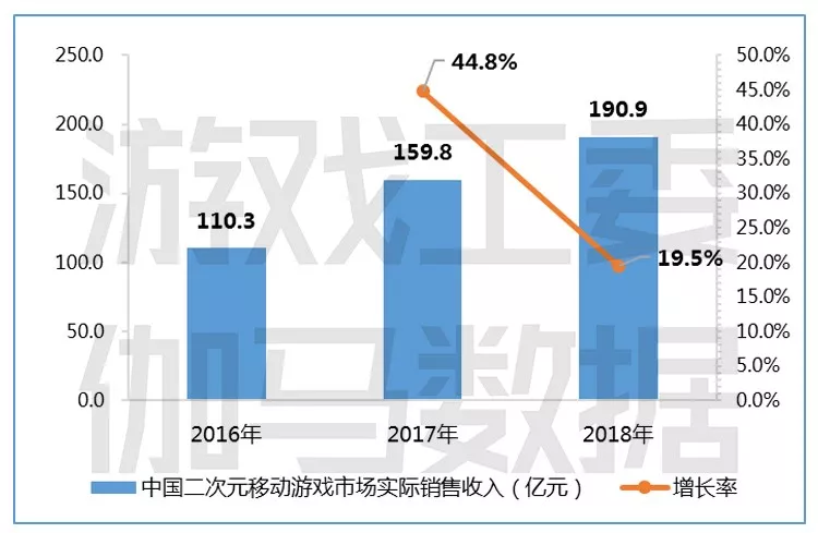 中国二次元移动游戏市场实际销售收入达190.9亿元,同比增长19.5%