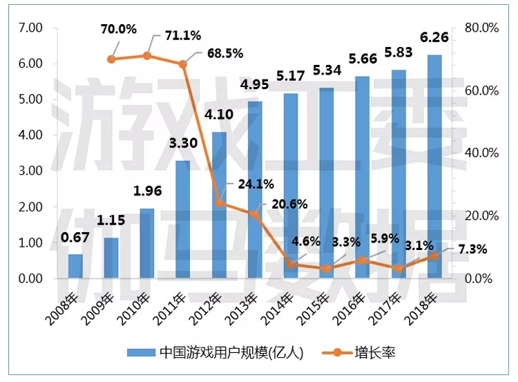 报告显示,2018年中国游戏用户规模达6.26亿人, 同比增长7.3%。