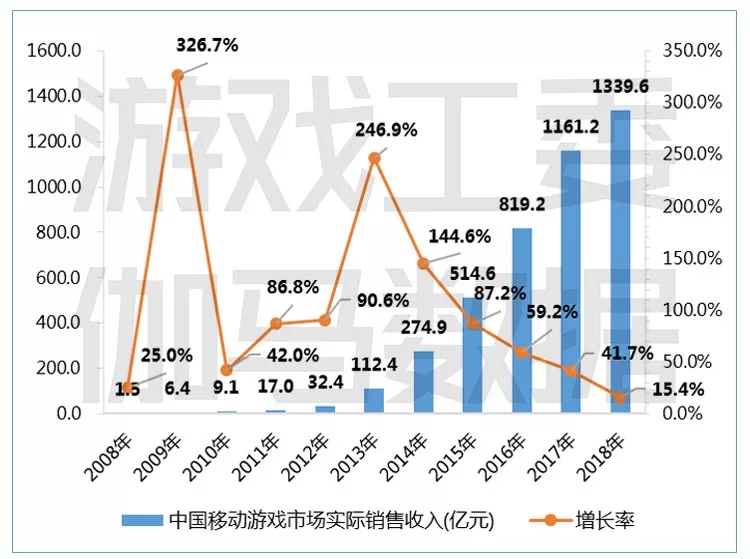 移动游戏市场实际销售收入1339.6亿元,同比增长15.4%