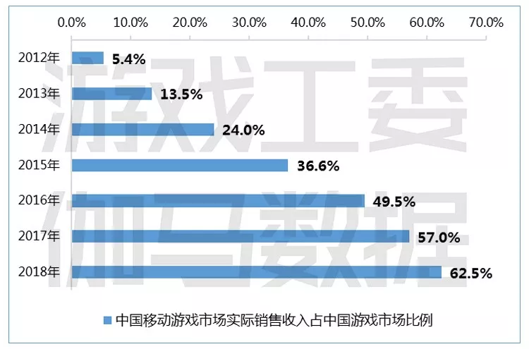 中国移动游戏市场实际销售收入占中国游戏市场比例
