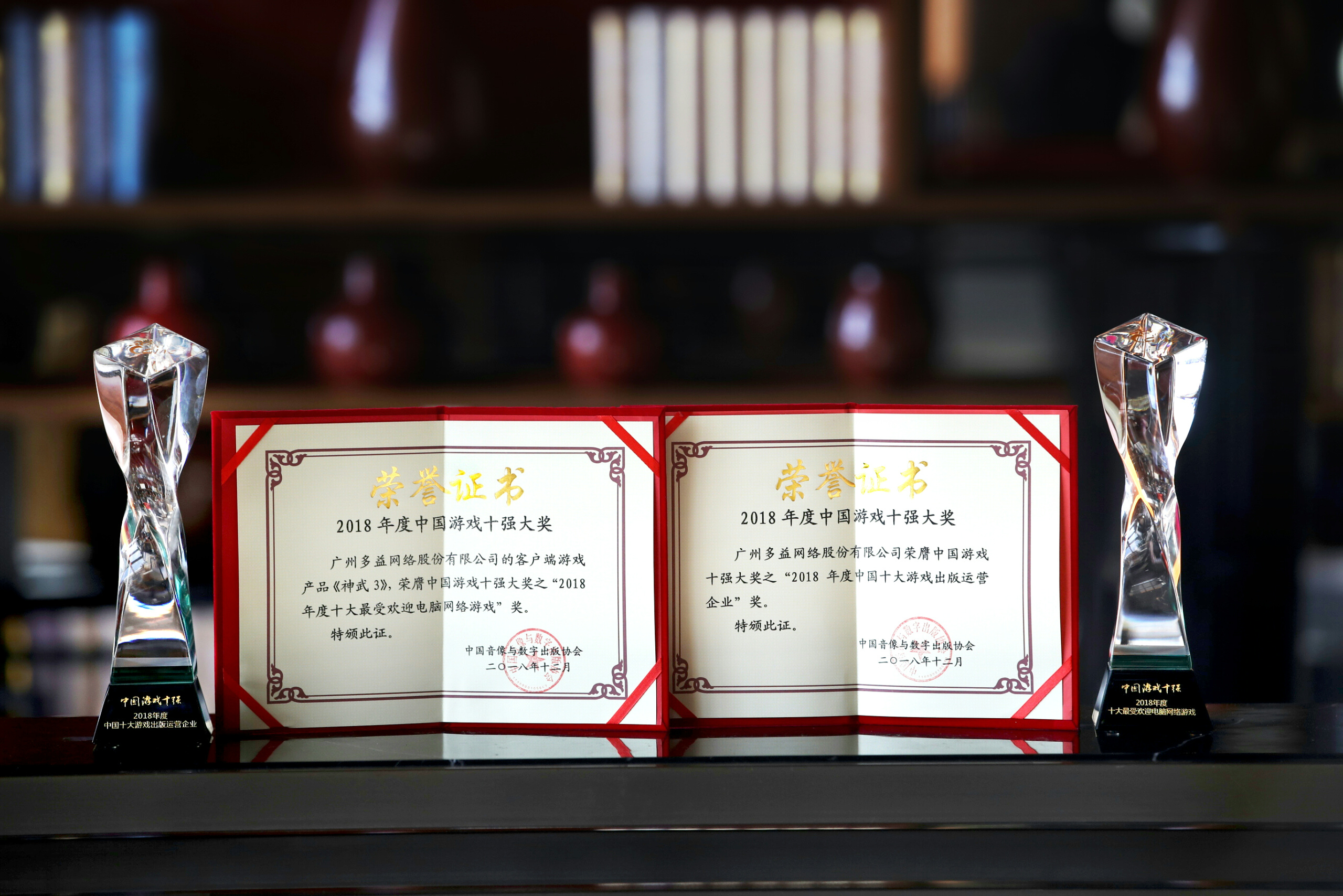 “游戏十强”盛典压轴展开。本次评选,多益网络荣膺“2018年度十大游戏出版运营企业”奖,《神武3》电脑版获评“2018年度十大最受欢迎电脑网络游戏”。此次获奖,足见行业及玩家对多益网络综合实力及影响力的肯定。