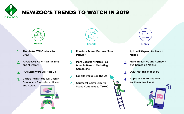 2018年已经画上句点,在过去的一年中,全球游戏行业的发展与进步令人欣喜。而在2019年新岁之际,荷兰市场研究机构Newzoo对未来一年的全球游戏行业(包括电竞、手游领域)进行了预期与展望。