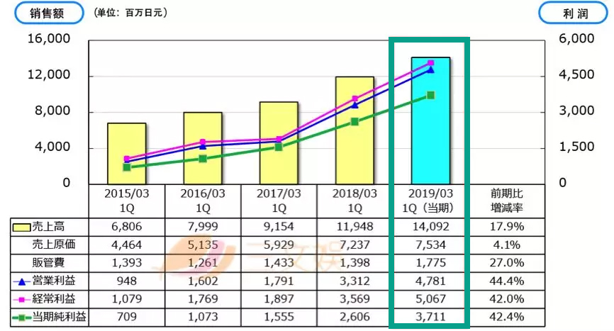 据2019财年第一季度报告显示,东映动画的销售额为140.92亿日元(约8.76亿人民币),同比增长17.9%。如果与2015年的同期数据相比,增幅则超过了一倍,高达107.1%。