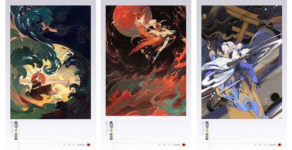 作为一款卡牌对战游戏,卡面的设计是最能显示游戏美术品质的地方之一。《代号SSR》在卡面上延续了《阴阳师》的和风风格,归属于每位式神的技能牌卡面原画也具有一定的故事性。