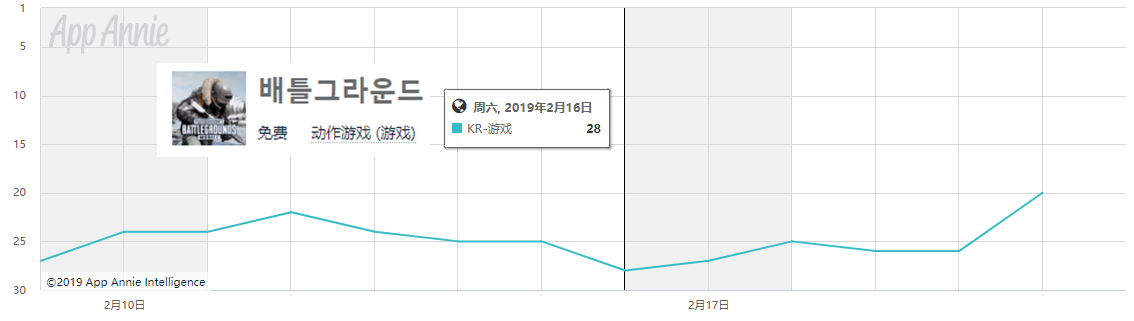 这种兴奋的情绪非常直观地反映在了游戏的表现上:《PUBG MOBILE》在韩国畅销榜的排名终于顺利突破Top20这个关口,在过去的两周时间内,游戏一直在Top20-30区间内徘徊。