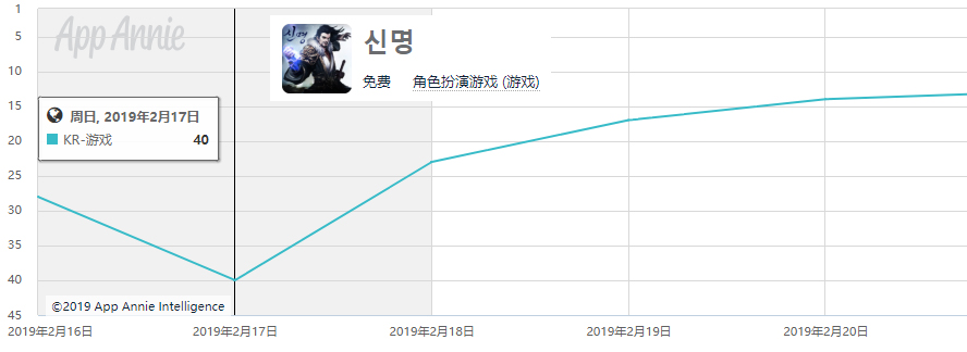 回顾君海旗下的《神命》近日在韩国市场的表现,可谓相当亮眼。在过去这一周的表现,游戏在韩国畅销的排名成一直线,一直稳定在第6位,而在免费榜的排名更是呈现出了上升趋势:从最低的Top40一路爬升到Top13。