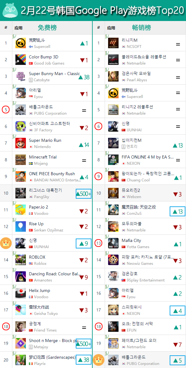 本期韩国出海之星:《神命》、《PUBG MOBILE》