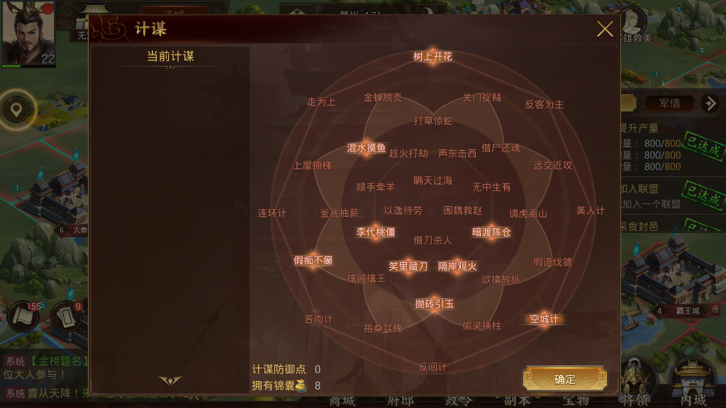 说完了战场上的士兵和名将这种硬实力,我们再来说一说游戏中同样至关重要的软实力:“计谋”。《梦想帝王手游》非常注重游戏中计谋的使用,每一位玩家都有三十六种计谋,这些计谋涵盖游戏中的方方面面,无论是进攻还是防守,骚扰还是反骚扰,你都能在这三十六计中找到对应的计策。