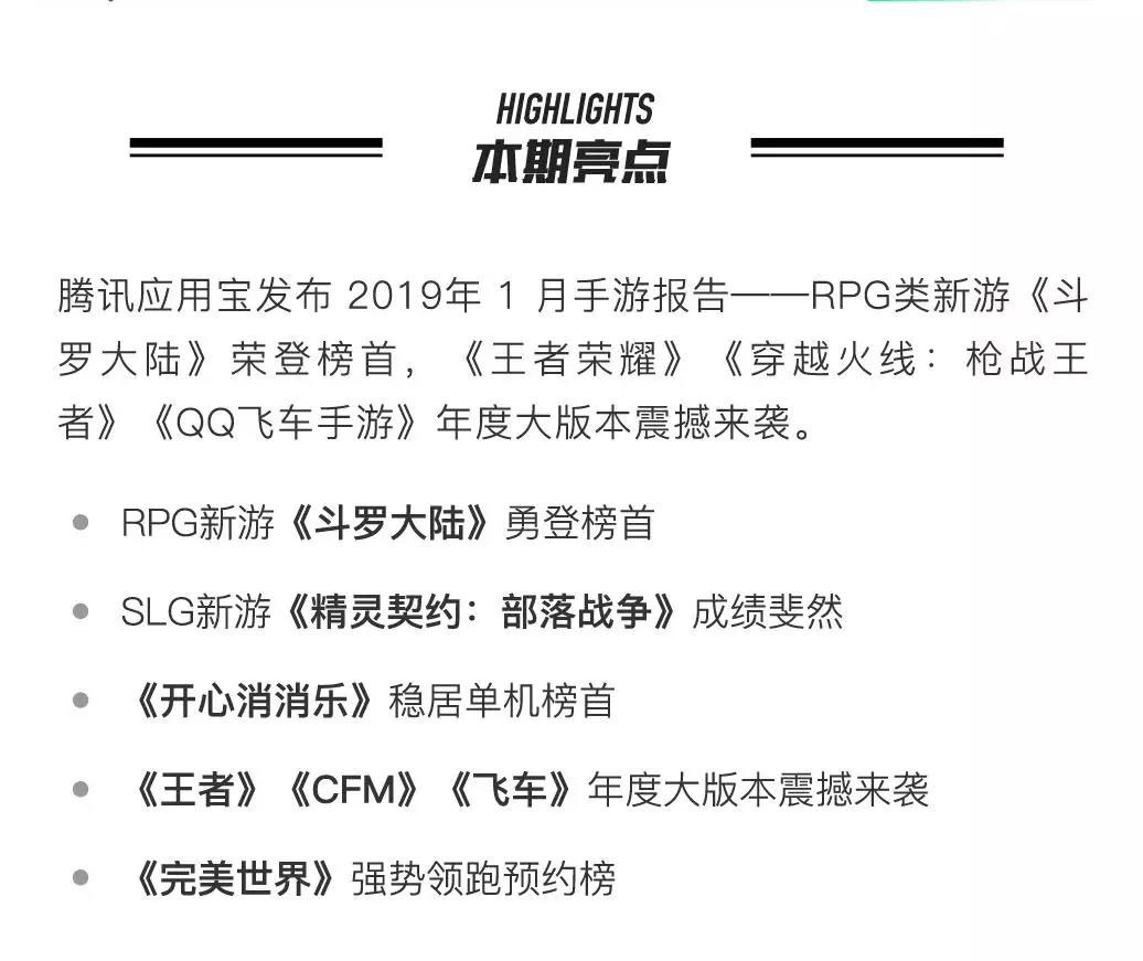 观察 | 应用宝1月手游报告:《斗罗大陆》荣登榜首,《王者》《飞车》年度大版本震撼来袭