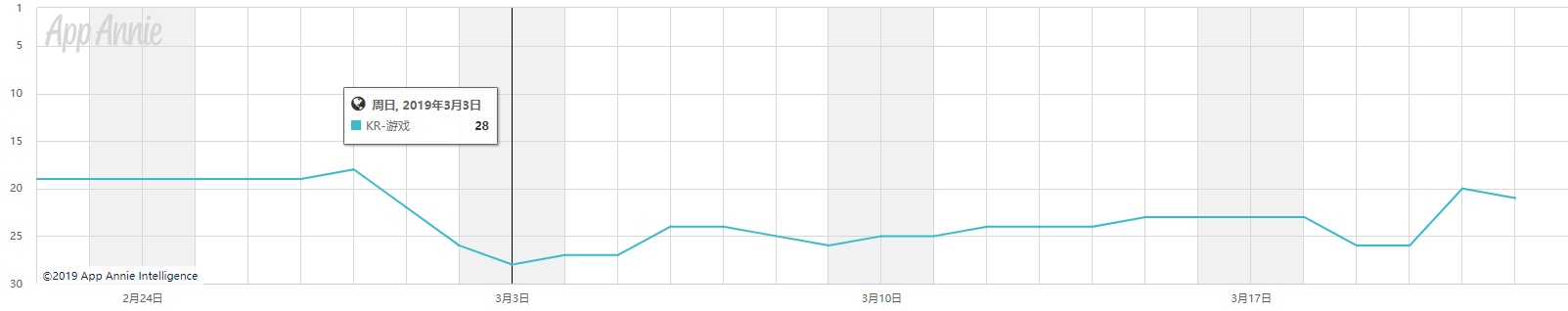 还是先从韩国市场开始:(由于韩国市场的手机平台构成极不平衡,所以我们取用的数据是在当地占据绝对优势的Google Play市场数据)