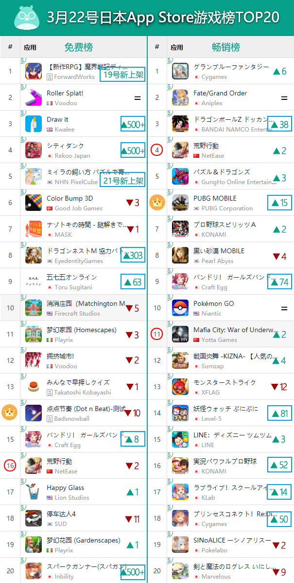 本期日本出海之星:《点点节奏》、《PUBG MOBILE》