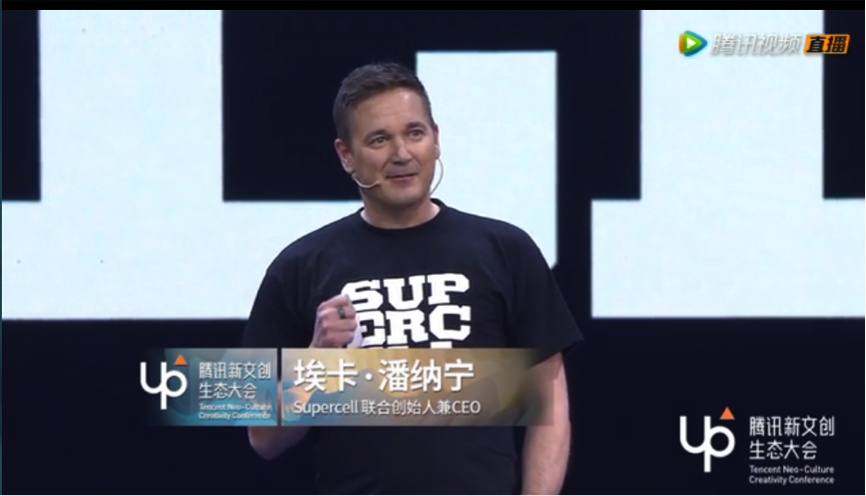 你好,谢谢,我是埃卡·潘纳宁,我是芬兰游戏公司Supercell的CEO。我本人非常荣幸能够出席今天的腾讯大会。腾讯是Supercell一个非常棒的合作伙伴,合作关系已经有几年之久。我也很荣幸能够借此机会谈一谈游戏作品,以及游戏在中国的发展。我认为中国在某种程度上是世界上最专业的游戏玩家的故乡之一。
