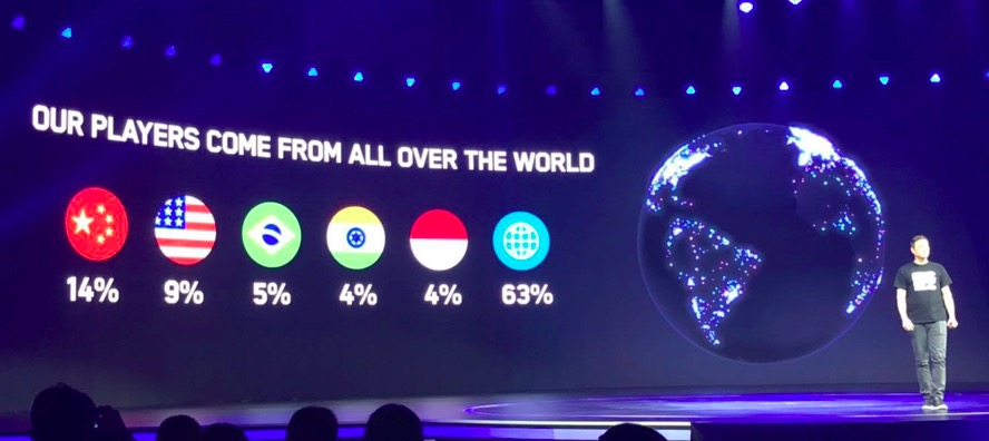 之前说到过,我们希望创造历史性的、那些永远留存于人们记忆中的游戏。同时我们也希望游戏的玩家人数越多越好,能让全世界每个人都能体验我们的游戏。我们很高兴看到这个愿景慢慢地变成了现实。我之前说到我到中国来感觉很棒,目前中国作为全球化市场之一,对我们来说已经非常重要了。我们的全球的玩家比例中很大一部分来自于中国,这让我很自豪。