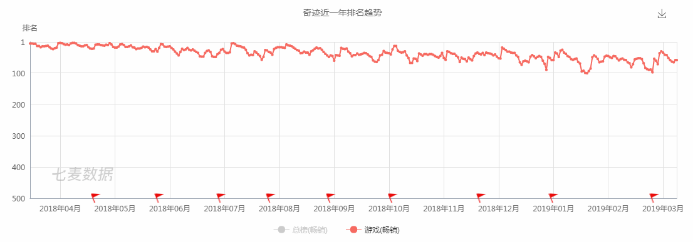 《奇迹:觉醒》近一年中国iOS畅销排行趋势