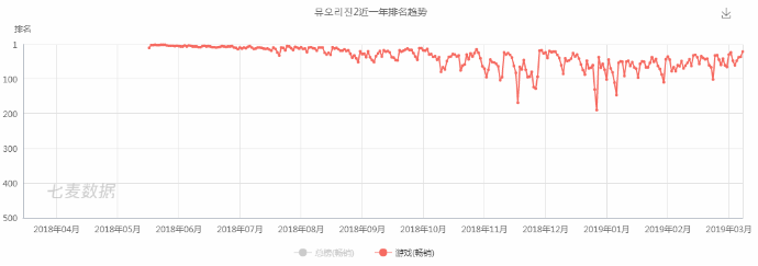 《뮤오리진2》近一年韩国iOS畅销排行趋势