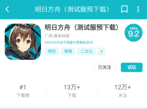 但仅一天,《明日方舟》的预下载量就达到了13万之多,着实是有些恐怖。