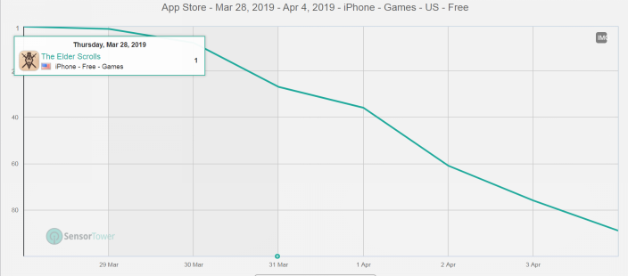 过去7天《上古卷轴:刀锋》美国iOS免费榜排行趋势