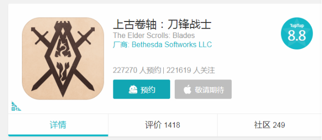 据悉,《上古卷轴:刀锋》由B社研发,是《上古卷轴》系列手机游戏新作,产品延用了《上古卷轴》系列游戏的美术、剧情以及核心玩法。从实机演示来看,本作延续了“上古卷轴”系列的RPG模式,游戏中内含深渊、竞技场和建造三种玩法。目前,该作在TapTap上的预约人数超过了22万,评分高达8.8,且绝大多数玩家都给出了5星好评。