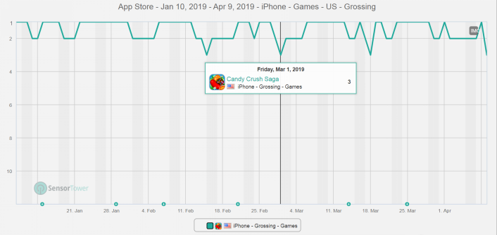 2018年《糖果传奇》拿下美国手游畅销TOP1