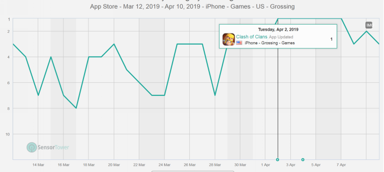 最近30天《部落冲突》美国iPhone畅销排行趋势