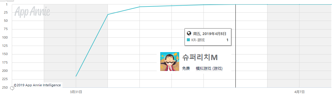 而到了2019年,BBGAME决定重返韩国市场。就在这个月初,BBGAME迎来了韩国市场今年第一个爆款作品:休闲放置类游戏《超级富豪M》在韩国Googleplay下载榜登上了TOP1宝座。游戏在3月底登陆韩国市场之后,很快就冲上了榜单头部,并且在4月5号至今一直保持在韩国免费榜的TOP10之内。