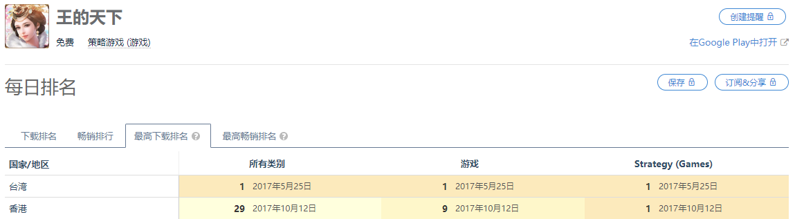 在进军港澳台市场的时候,BBGAME选择了SLG作为登陆港澳台市场的先锋。旗下SLG《王的天下》在Google Play游戏下载榜分别拿下台湾市场的TOP1以及香港市场的TOP9;