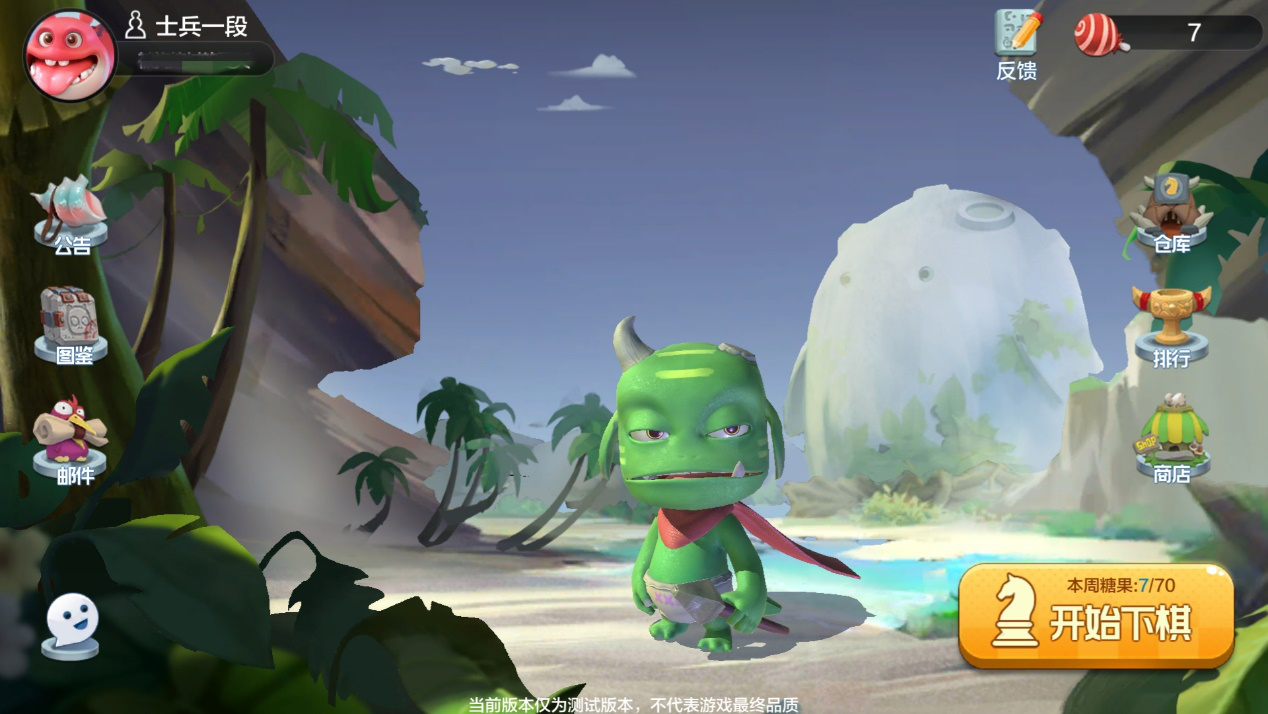 首先来说说主界面上的细节吧,成功登陆后就能看到我们的初始棋手,一个绿皮兽人,而且背景还有动态效果,主界面非常的简洁。
