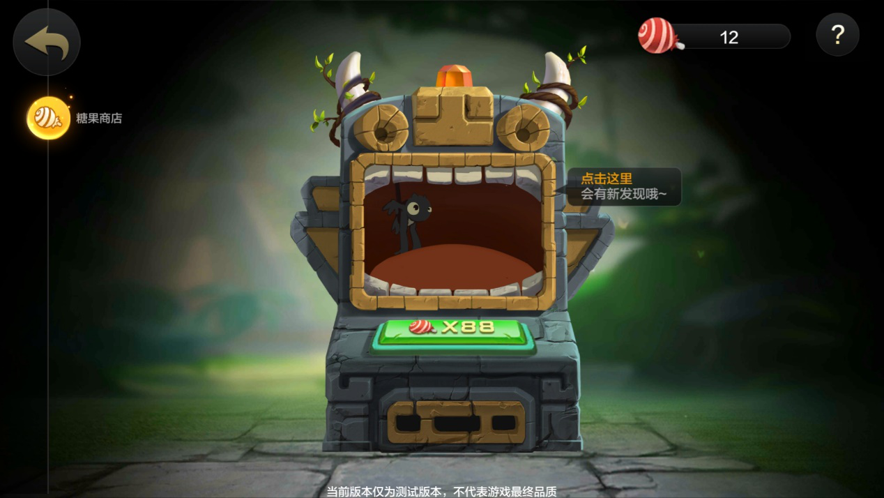 画面左侧依次是公告、图鉴和邮件,右侧为仓库,排行以及商店。其他的没什么好讲,但是这个商店还是值得一说。点开之后其实并没有太多的内容,只有一个萌萌的扭蛋机,玩家依然可以通过糖果来抽取扭蛋。令人欣慰的是这里面并没有任何的属性加成道具,完全不会影响游戏的平衡,所以手游的竞技性就有所保证了。