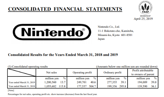 近日,日本知名游戏厂商任天堂公布了截至2019年3月31日的年度财报。根据财报信息,本财年该公司净销售额为12005.60亿日元,同比增长13.7%;营业利润达到2497.01亿日元,同比增长40.6%。其中,移动业务销售额同比增长17%至460亿日元(约合4.12亿美元)。