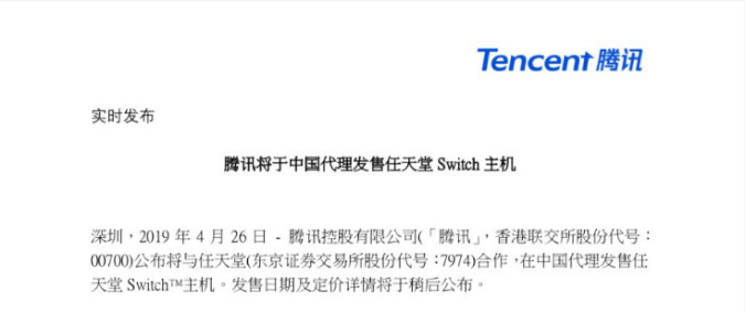 此外,值得一提的是,今日腾讯正式宣布将于中国代理发售任天堂Switch主机,目前发售日期及定价详情尚未公布。得益于中国市场庞大的玩家基数,在腾讯正式代理Switch主机之后,未来任天堂Switch主机硬件和软件销量有望迎来新的高峰。