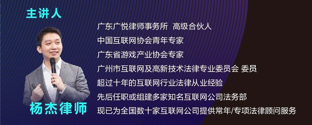 1、来自实践,反复打磨:杨杰律师团队专职互联网法律服务,在网络游戏、互联网平台服务等相关法律问题的处理上有着丰富的经验,沙龙内容都是其团队久经沙场总结出来的宝贵经验,带你全面深入了解游戏买量市场。