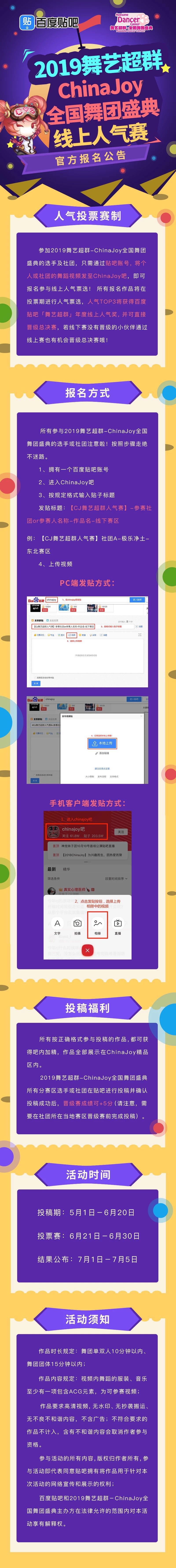 参与活动的选手及社团,只需将舞蹈视频按正确格式发至ChinaJoy吧,即可报名参与线上人气票选!
