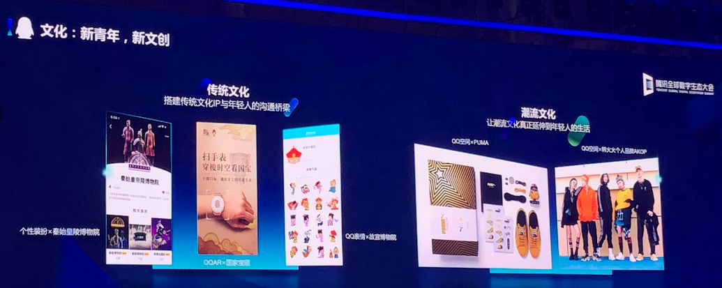 我们在去年跟故宫博物院和秦始皇陵博物院进行了个性化装扮、表情包的合作,让这些传统内容能够在QQ用户中形成非常好的传播。我们也跟一些潮流品牌合作,让年轻用户感受潮流文化。