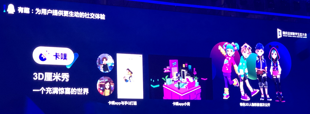 在让QQ更有趣方面,今年下半年,我们将首先在社交平台上发布第一个3D Awata产品《卡噗》APP(即3D厘米秀)。