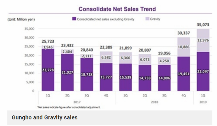 除了《智龙迷城》表现出色之外,GungHo旗下子公司Gravity在2019年Q1期间亦表现不俗,成功助推GungHo公司营收显著增长。