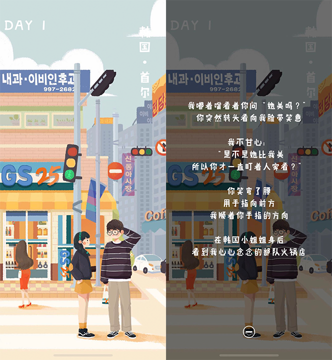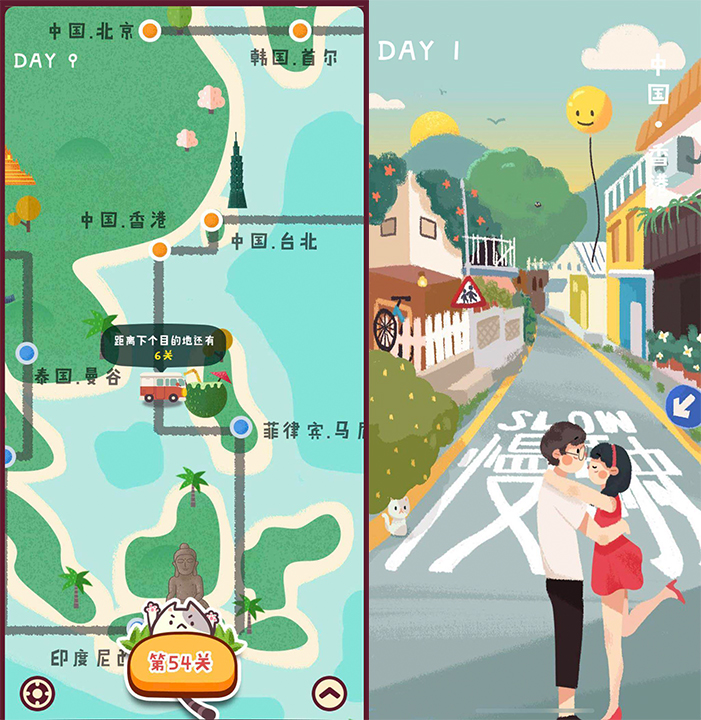 从产品的角度来看,《旅行串串》带给玩家的清新感很大程度上依赖于它的美术风格,这种类似于蜡笔画的表现形式,在观感上相当符合当下对清新的定义,再结合游戏题材基于男女主角恋人关系的展开,清新感则更加强烈。